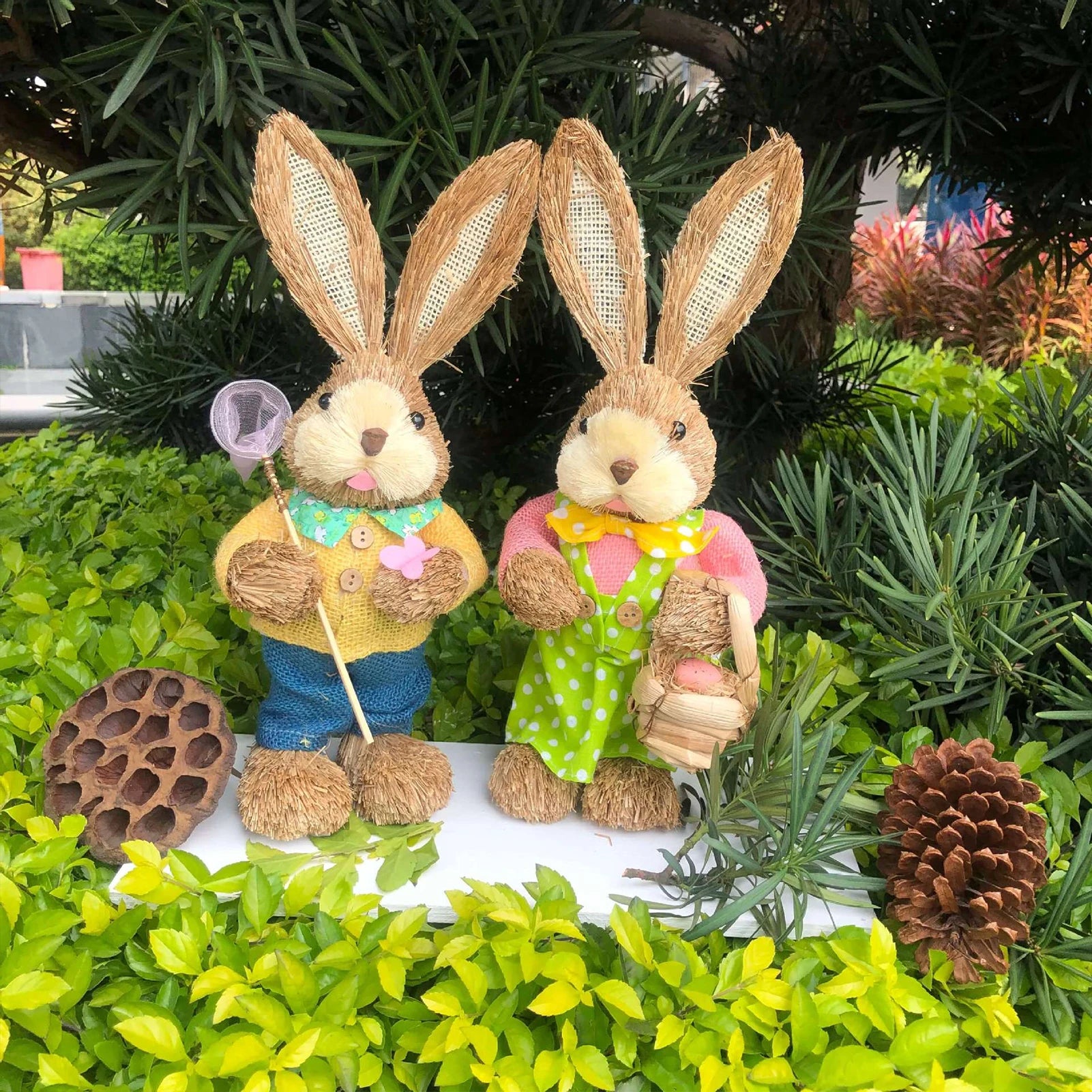 Par de Conejo de Paja 35cm - Decoración de Pascua