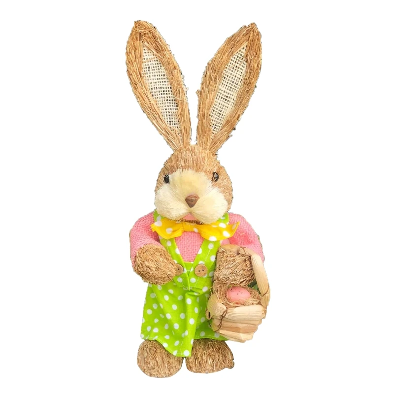 🐰 Material de Alta Calidad: Fabricado con paja tejida y tela de primera calidad, este conejo decorativo es resistente al desgaste y duradero, con un diseño único y artesanal.