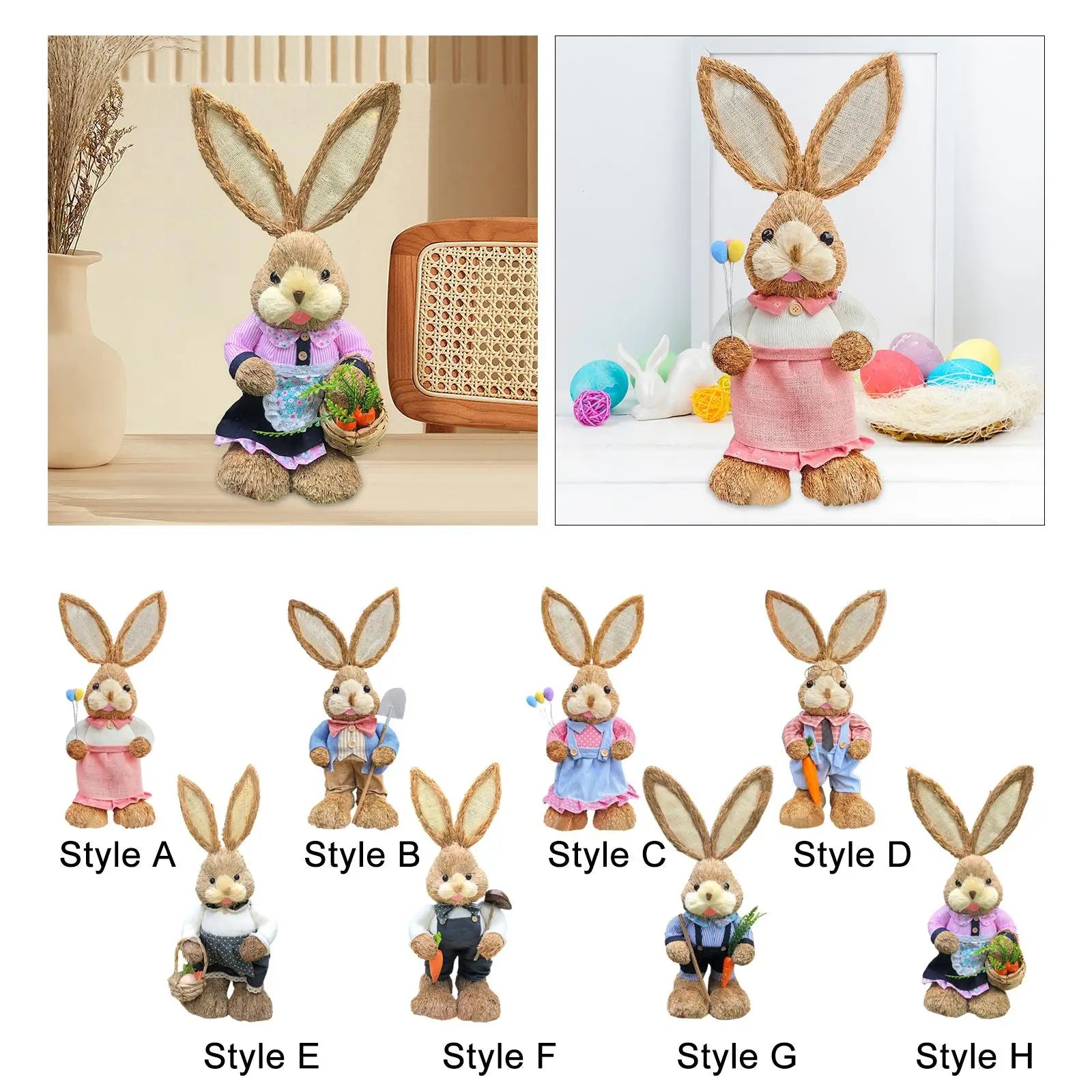 Figura de Conejo de Paja - Estatua Decorativa de Pascua